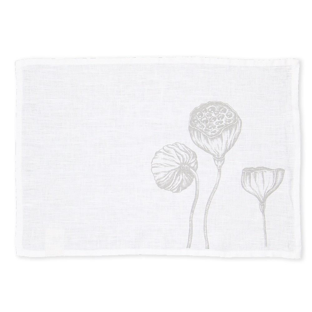 Placemat made of 100% linen, pre-washed, hand-printed with GOTS-certified inks. Decorated with a decorative wreath of leaves, branches or dried flowers.