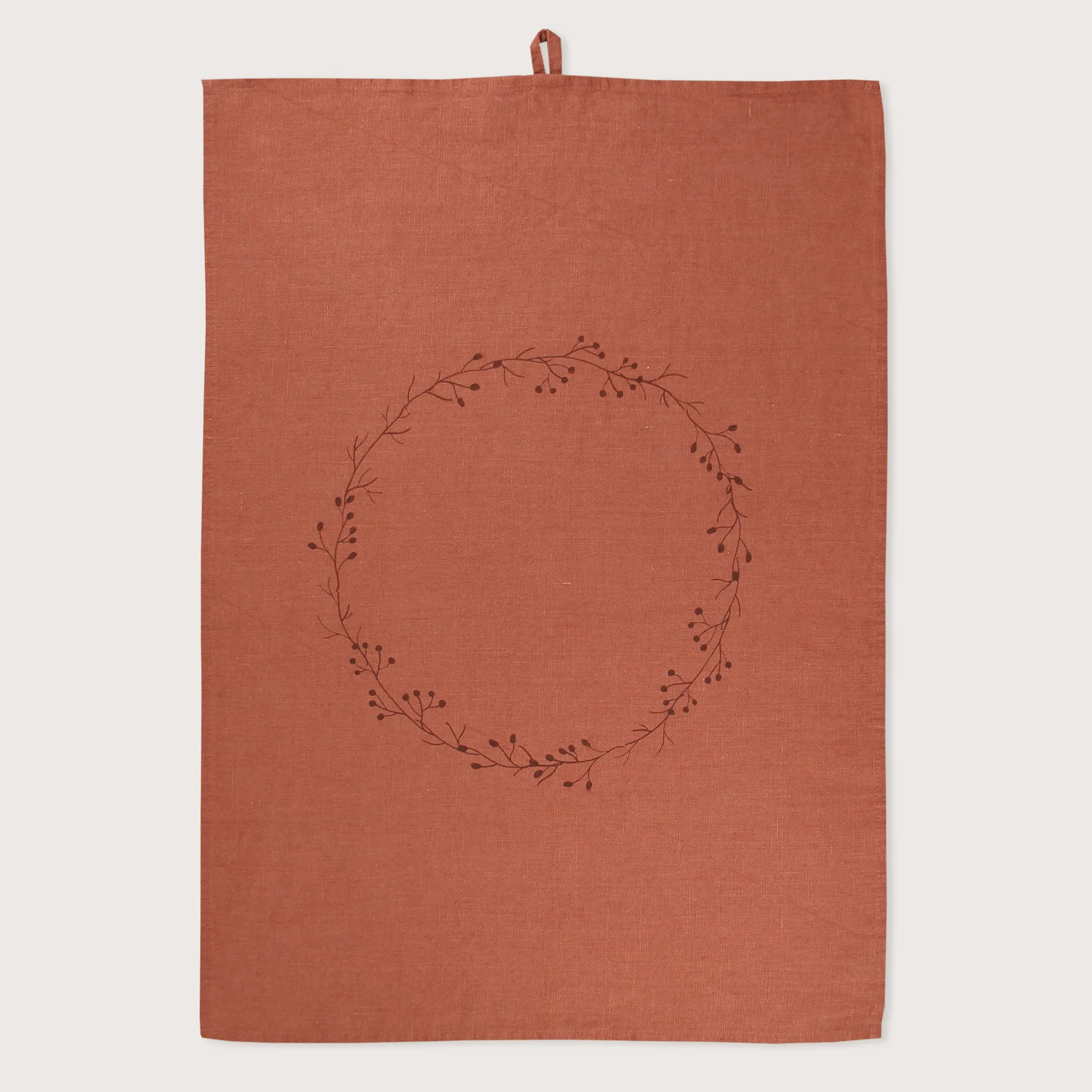 100% hand-printed, pre-washed linen, printed with GOTS-certified inks, machine washable at 40°C. Linen dish towels improve with every wash.