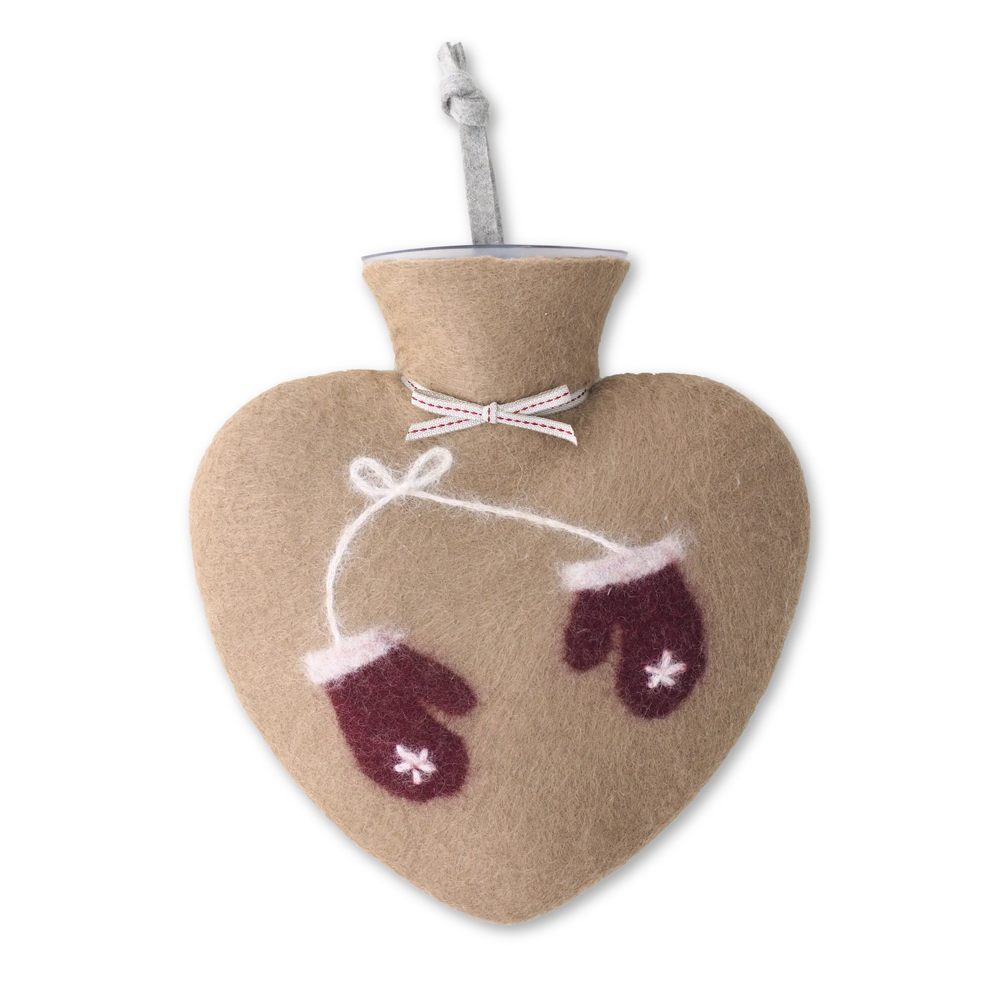 With adorable mittens dangling this heart warmer brings winter coziness into your home. The lovingly crafted felt appliqué tells stories of frosty walks and the comforting feeling of warm hands.