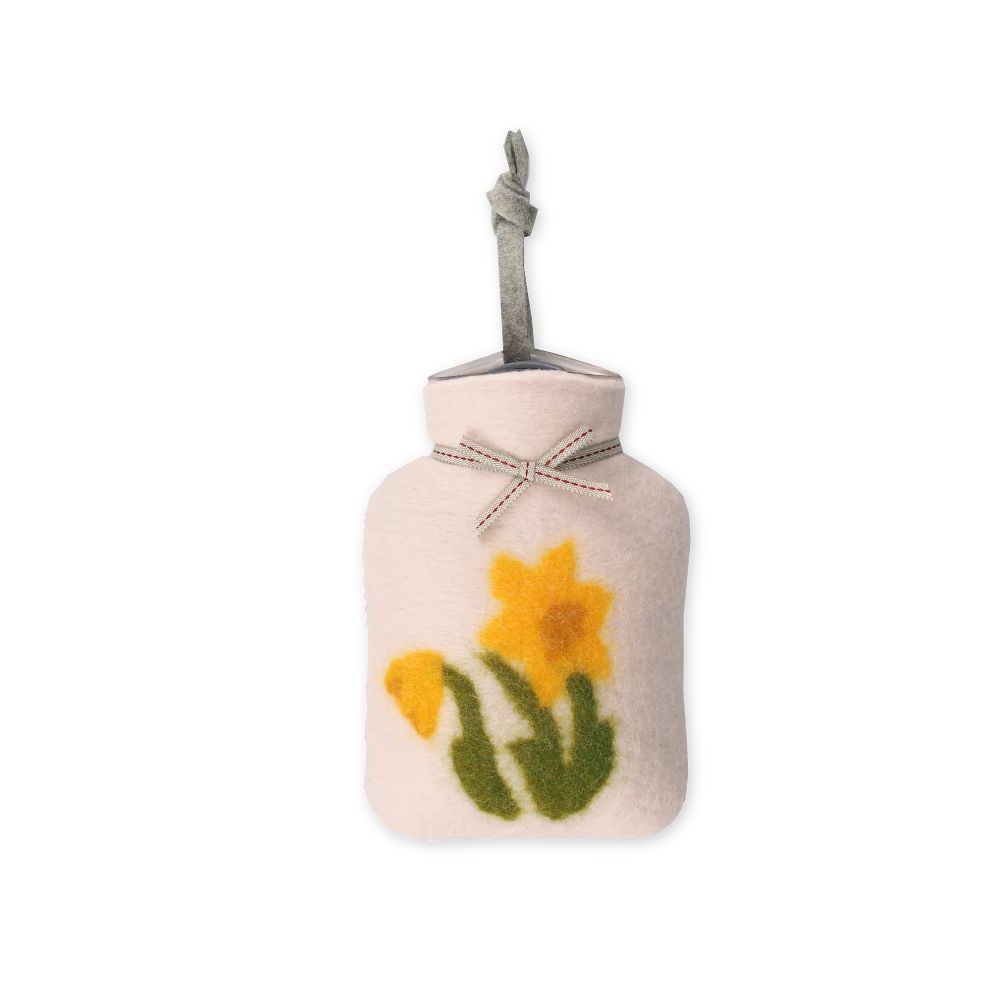 Diese hochwertige Wärmflasche ist von 100% feiner Merinowolle umhüllt und sorgt für eine angenehme gleichmäßige Temperaturabgabe und ein besonderes angenehmes Hautgefühl. Jede Wärmflasche wird einzeln von Hand gelegt und gezupft und mit einem liebevoll ausgewählten Motiv gestaltet – so ist jedes Stück ein echtes Unikat.